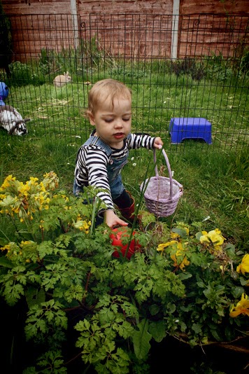We went outside and Ebony immediately marched over to the rabbits and demanded to know where the eggs were. Luckily Sweep and Hazel weren’t giving anything away, so after a while Ebony began her hunt around the garden. Every time she found a foil wrapped egg she wanted to eat it, but I managed to convince her to find them all first and then we could take them in - it was really windy.