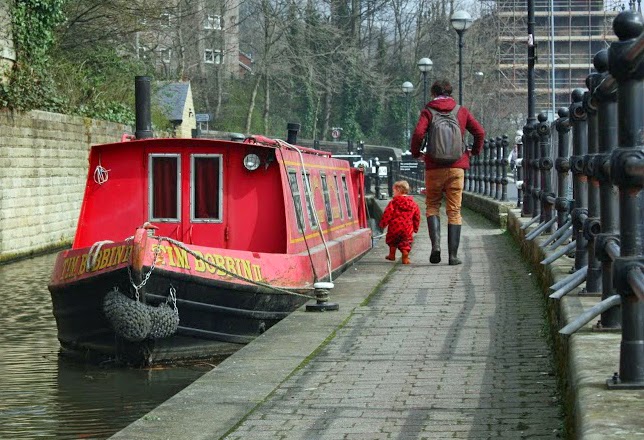 When we reached our starting point again, Ebony wanted to investigate the barge parked up on the canal. She ran along next to it, trying to peer in the windows, luckily the curtains were closed (sorry, barge people). At the end of the boat was the lock. It was a huge lock, much bigger than the ones she has seen before, so Laurie took her (because, it turns out, he really likes locks) to see how it worked. As he was explaining the finer points of lockery (not a real word) to her, the Lockmaster invited them into the ‘authorised personnel only’ section. I followed, and immediately regretted it, the drop down into the lock was HUGE, and I felt beyond terrified every time Laurie leant over to point something out to Ebony. What kind of person leans over a perversely high drop carrying a child?!