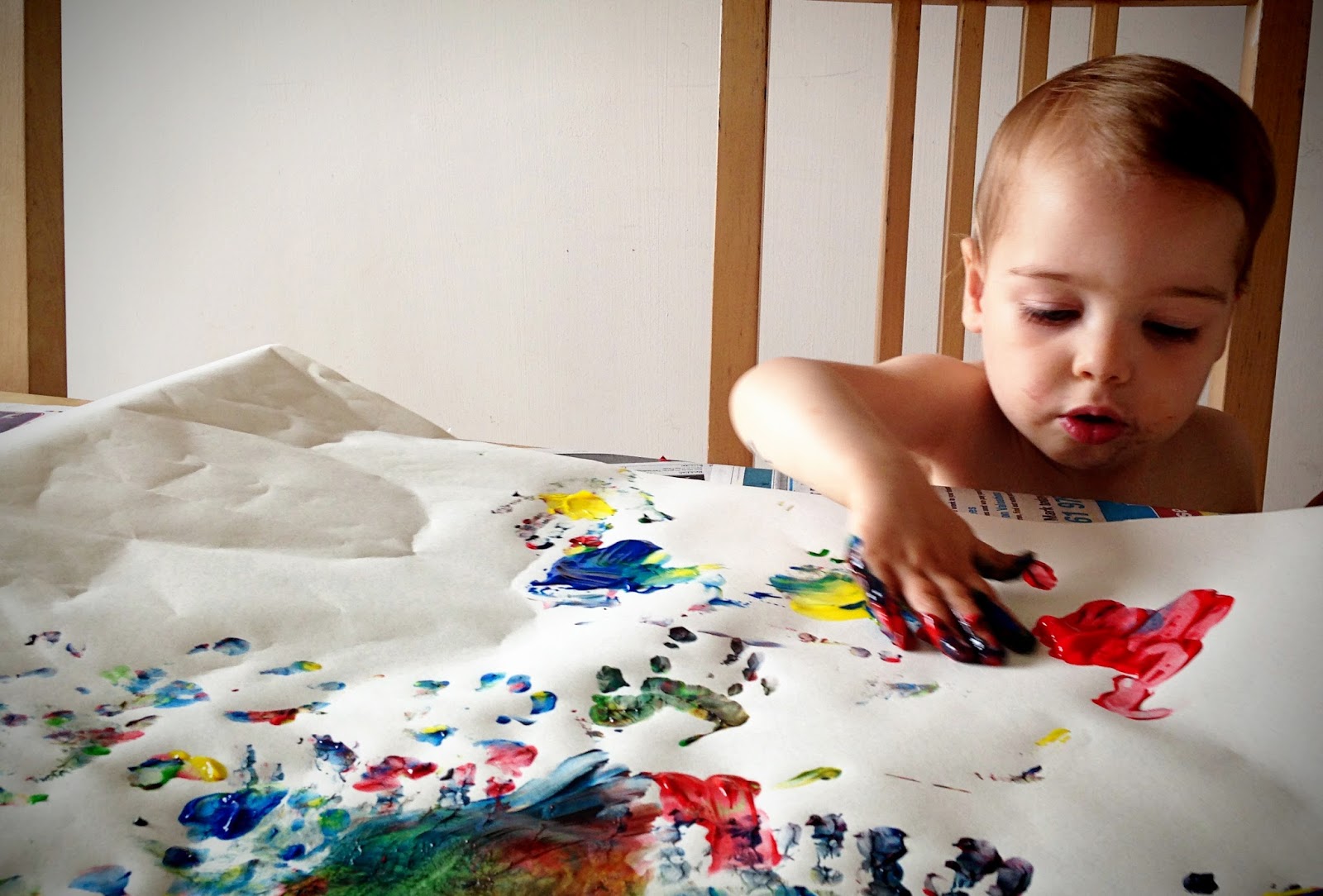 In a desperate attempt to convince Ebony that life was much better without Laurie, I whipped out the painting supplies. After playing with some sponge letters and paint, we moved on to finger painting. Ebony ended up coated in paint, and had to be taken straight to the bath once we'd finished.