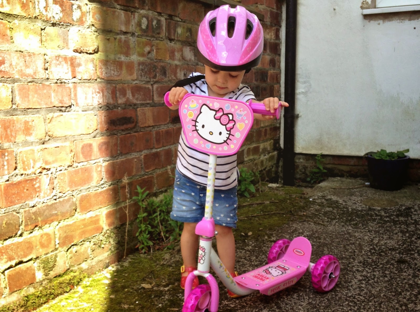 The second photograph was taken on moving day, as Ebony explored our new garden. Our last house had a gravel path, so there wasn't anywhere for Ebony to ride around on her scooter. Me and my sister spent hours cycling up and down the path at my parents' house, so I always felt bad that Ebony couldn't do that. Our new house has a concrete path around the back of the house, so now Ebony will be able to practice her scooting to her heart's content. Here she is having her first scoot down the path, much to my excitement. When It was taken on my phone because my camera battery had died and, of course, I had no idea where I'd packed the wire.