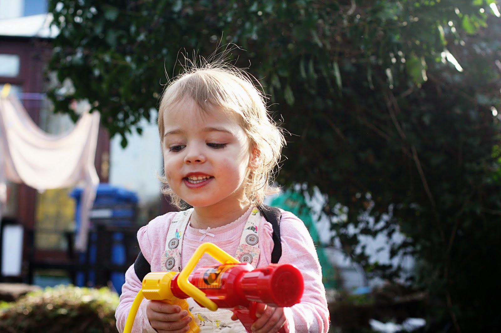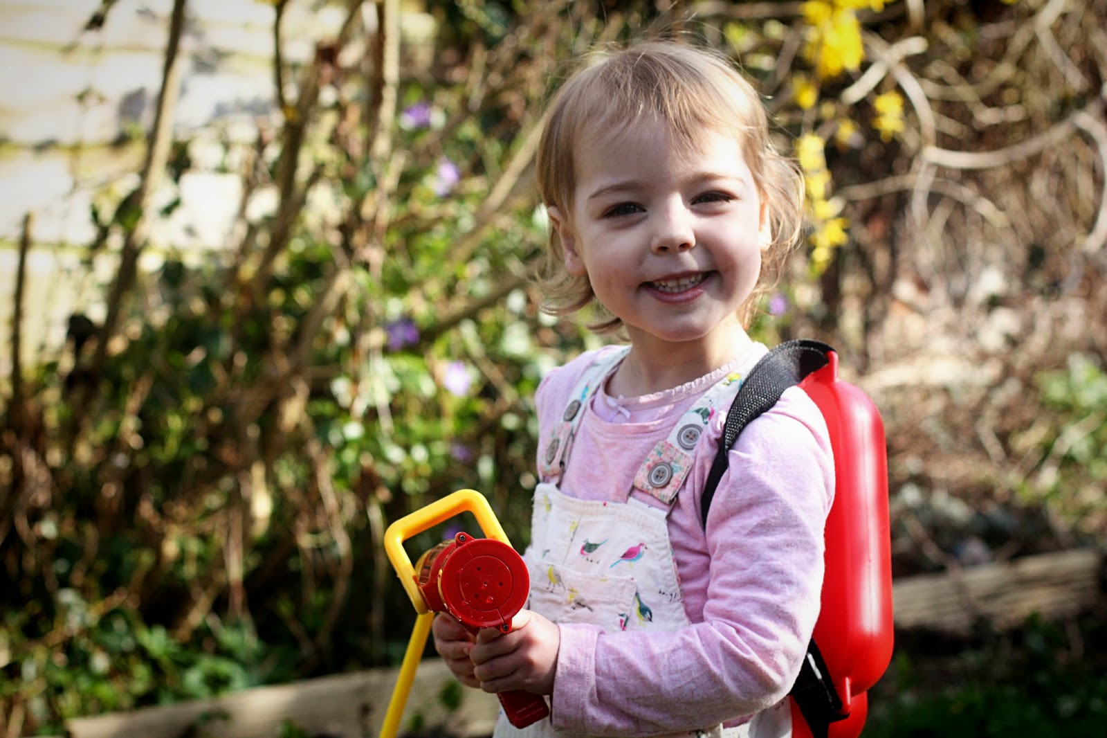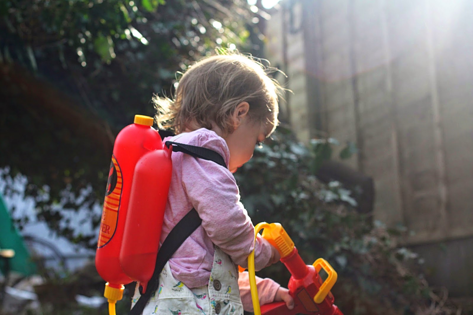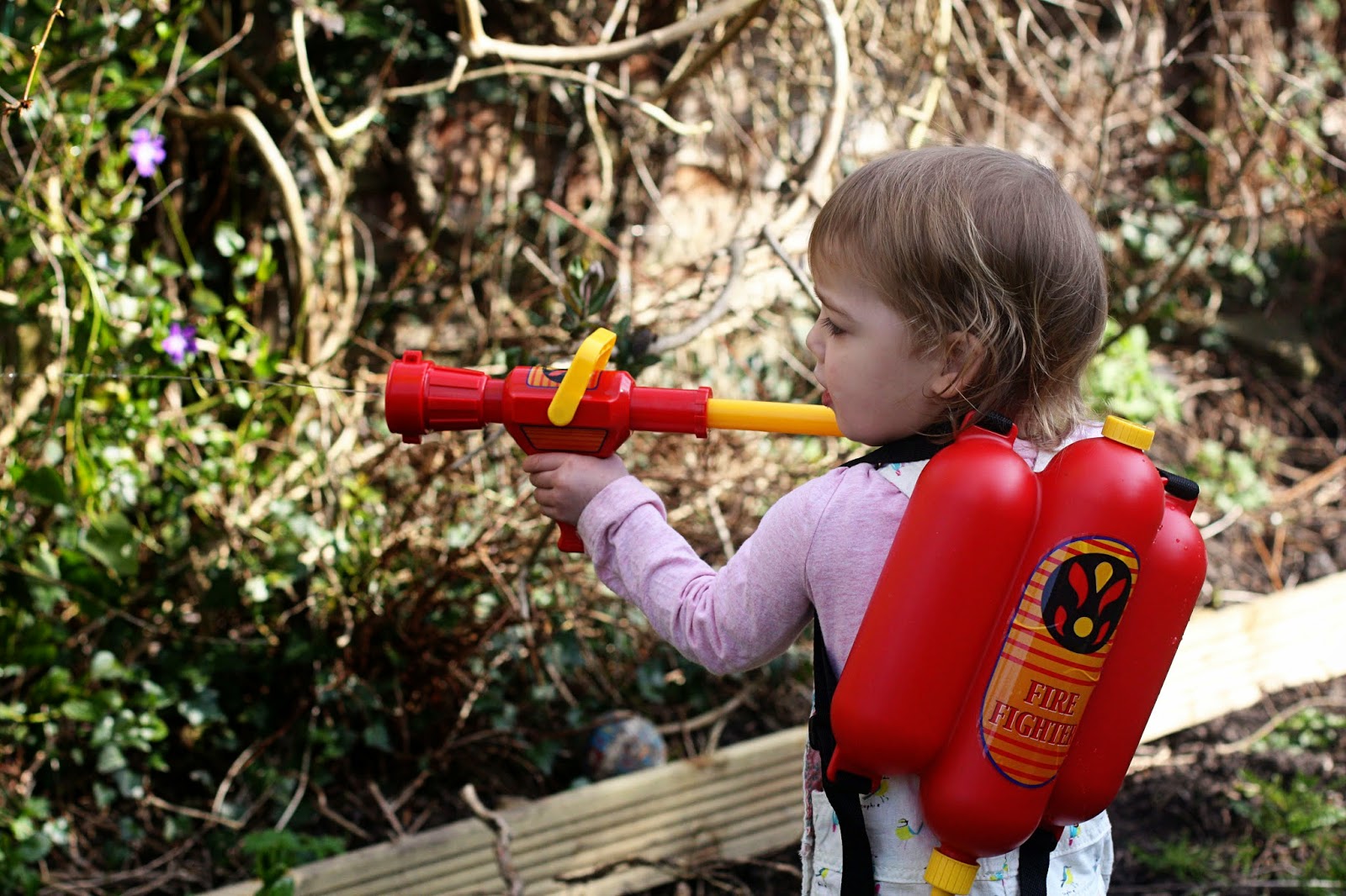 The fireman’s water sprayer is hands down the best toy ever. It has a plastic backpack bit that you fill with water, and then a hose (essentially a super soaker style thing) that you can shoot water with. We have already had hours (and hours) of fun with this in the garden. It’s well made and brightly coloured. This is absolutely definitely the perfect toy for a three year old. Ebony loves running around the garden ‘putting out fires’, and even answers the fire station phone with an “Oh goody!” (let’s hope she is never actually a firefighter). As an added bonus, I haven’t had to water any of my flowers for quite a while now because of the conveniently placed imaginary fires.