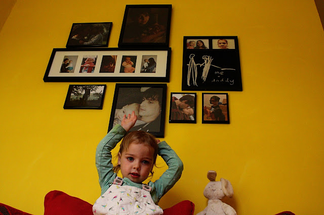 The room was in need of a few extra finishing touches to try and tone down the walls a little, and I still haven’t got round to sorting out a lot of these. So, for Father’s Day, I thought we might try to make the little more homely for him. The great thing about being Laurie is that he has a very lovely wife who takes hundreds and hundreds of photos of him and his daughter (interestingly, there are about eight photos of me and Ebony, and I took them myself with a tripod). I decided to get a few of these photographs printed off to create a gallery wall in Laurie’s office.