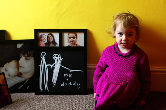 Once I’d chosen the frames I wanted to feature on the wall, it was time to choose which photos would go up. I wanted to choose some of Laurie’s favourites, as well as sticking up a few of my own. I also wanted to make sure that the photos reflected the whole of Ebony’s life, rather than just all being from a particular moment in time. I also wanted to put a feature up that wasn’t just a print. I was hoping to find a ‘L’ that could go on the wall, but in the end settled for a blackboard. I got Ebony to draw a picture on the blackboard so I’m sure Laurie will love it.