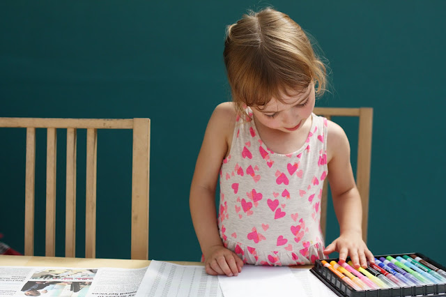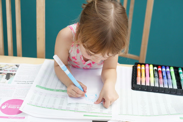 I bought some fabric pens (I got these ones for a fiver) and some stuffing (this one) from Amazon (I signed up for a free trial with Amazon Prime and now everything arrives at the speed of light and it is amazing) and bought some plain white fabric from our local craft shop. I thought it would be a nice idea to get Ebony to draw our family for the mobile because I really love the people she draws and I thought it was a nice way to personalise the mobile. I cut the fabric into rectangles and she drew each member of the family including the cat. Once that was done, I ironed the fabric straight away to protect the images. Then it was time to start sewing.