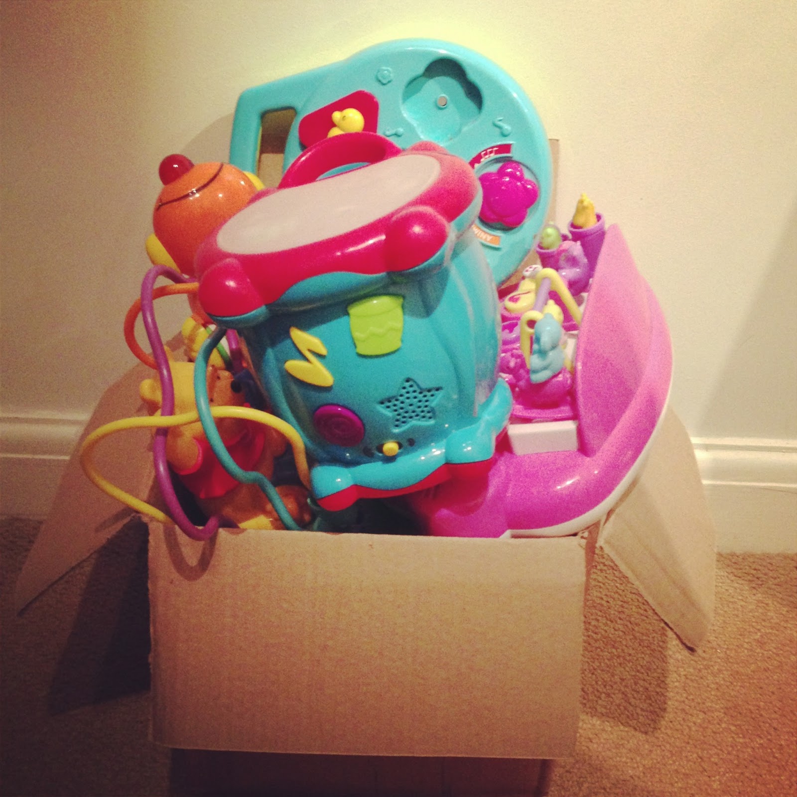 Around the time of her first birthday, Ebony went through a stage of gathering her favourite belongings, and herself, into a box. On every occasion, the electronic toys were the first in. The bilingual shape toy, the demo keyboard and the shrill ladybird would make it to the final cut every time. They were her favourites.