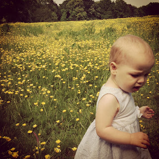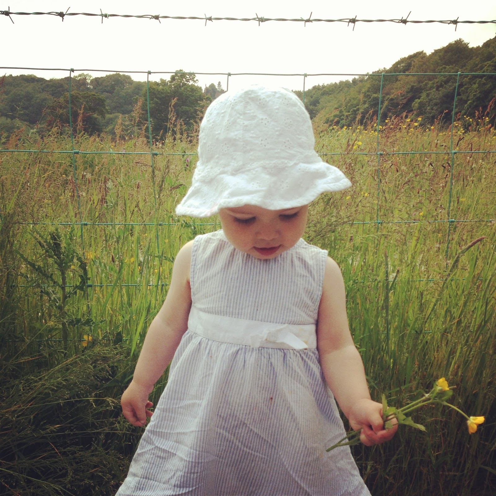 Kirk Woods were less toddler-friendly than the woods closer to home. There were lots of sheer drops running alongside the paths, and the woods were quite steep for walking up. Ebony had fun running about, while I ran after her sweatily screaming things like “Oh my god, no, be careful of the edge!” After walking through the woods for quite a while, we came to an opening in the trees. Thousands of yellow buttercups stretched out in front of us. We stayed there for a little while, exploring the meadow and picking buttercups, and then we decided to head home.