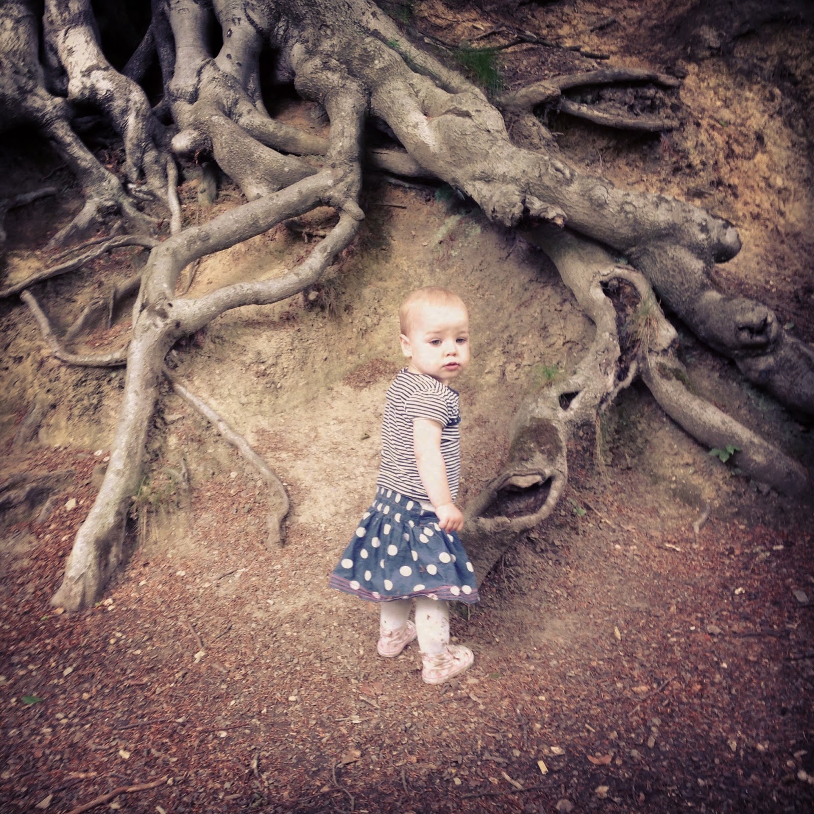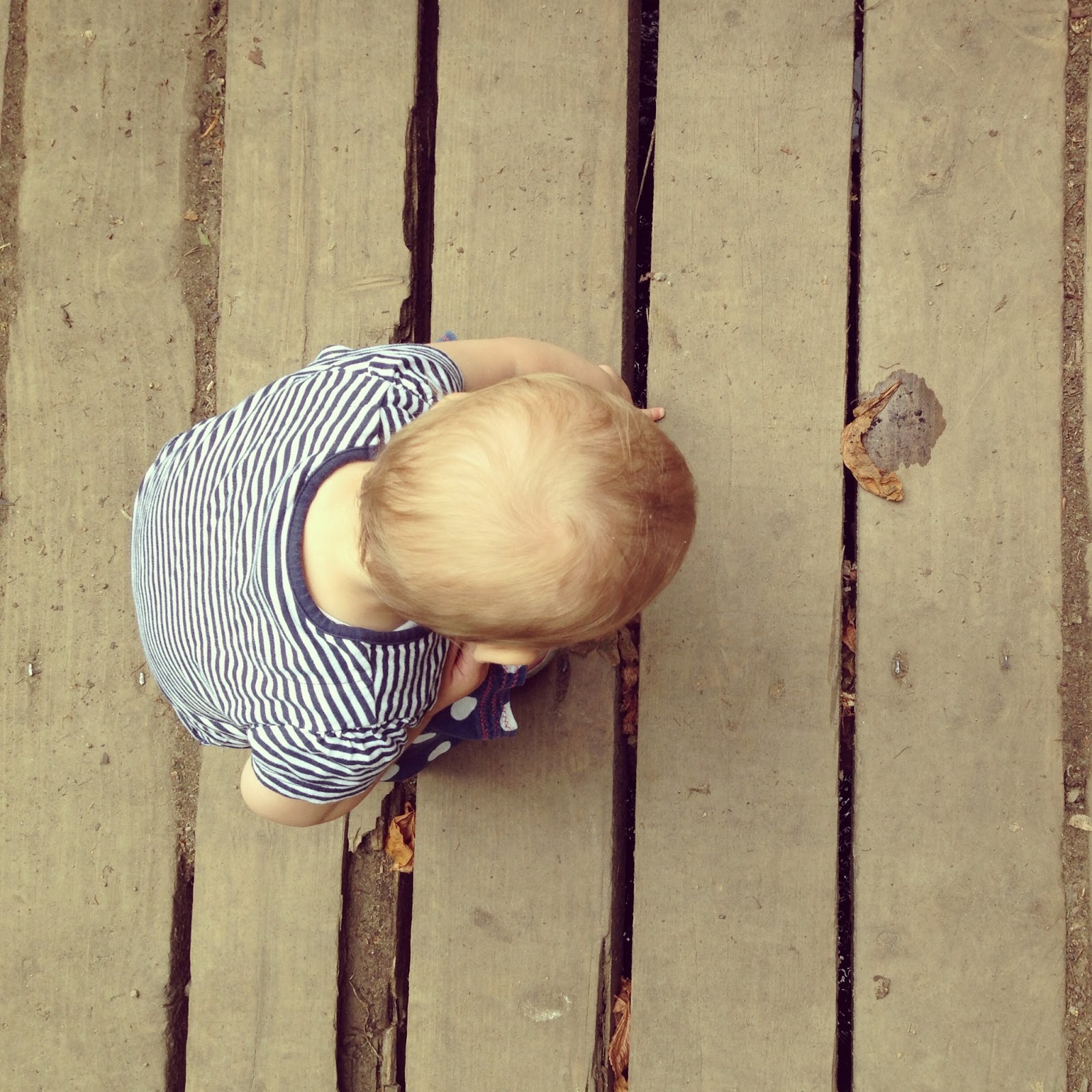 We set off to walk around the lake, but didn’t get very far before we came to a small wooden bridge. The problem with small wooden bridges is that they have gaps between the planks of wood. And the problem with that is that Ebony can spend a scarily long length of time bent over, staring through the cracks to see what lies beneath. So that’s what we did, for no fewer than 10 minutes. The great thing about the great adventure, is that it all happens at Ebony’s pace. We have no destination, and we’re not constricted by time, so she can explore as she wishes.