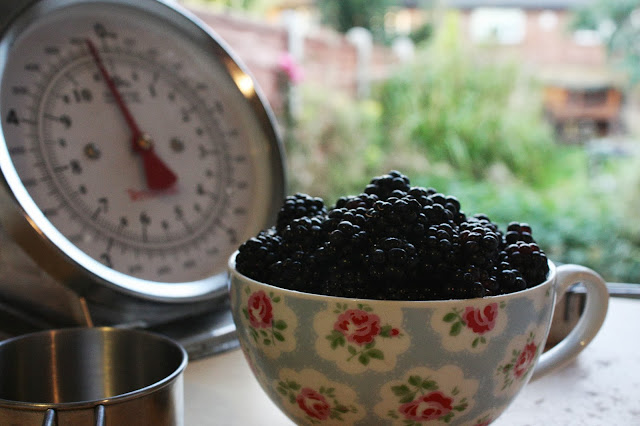 Last night was the night of the pies in Bake Off terms, so I decided to make a pie for us to enjoy while we watched. I took Ebony to the woods near our house, and we collected an impressive amount of wild blackberries. Ebony likes foraging, and knows not to pick the lighter coloured blackberries. After we filled our tupperware (and Ebony’s tummy), we headed home to start baking.