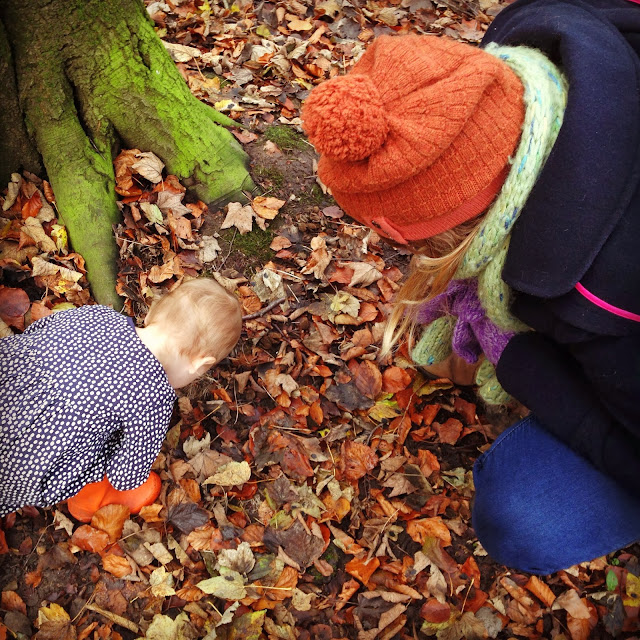 Ebony has a new obsession with walking around things, usually me, in huge circles. Often at playgroups I am being circled in a semi-predatory fashion these days. Ebony found some decaying leaves and exclaimed, “Oh dear!” many, many times while Alys tried in vain to explain the concept of fungus.