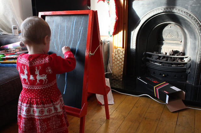 After all the presents had been opened, my parents came round with their gifts. They made Ebony an easel and she loves it. My dad had the space-saving idea to make it fold down (unlike the one he made for me and my sister years ago), but Ebony won’t let me fold it down and put it away, and I’m not sure she ever will. After we’d eaten more presents, we went for a walk at a local park.