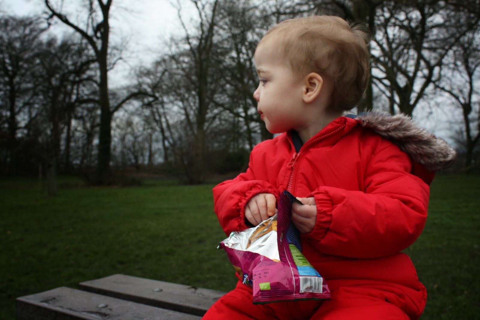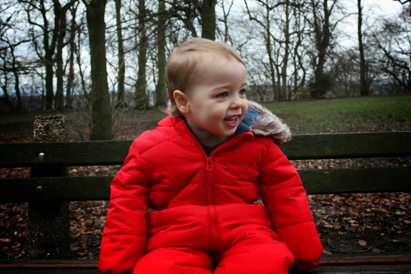 Ebony and Laurie chased each other, and played hide and seek while we made our way further into the park. It was very muddy so we were all kitted out in wellies, and Ebony was wrapped up warm in her snow suit. There were lots of dogs about, and Ebony flicks between loving dogs and being scared of them.