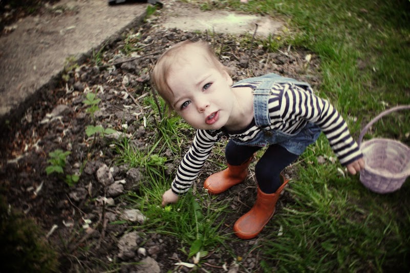 On Easter morning, while Laurie got Ebony dressed, I ran outside in the gale force winds and hid all of the eggs, and the big bottle of gin Easter bunny had kindly dropped off for Laurie. Most of our garden it taken up by the rabbits, and the rest of it is in a state of disarray, so it wasn’t that easy finding suitable hiding places.