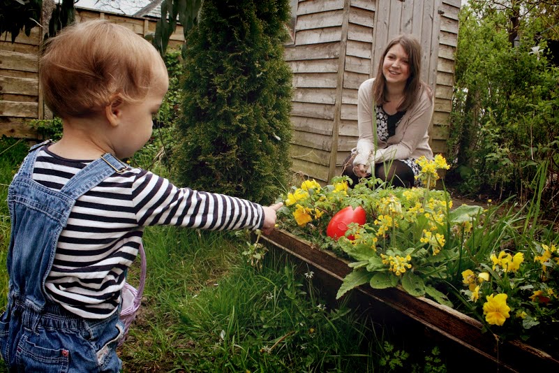 We went outside and Ebony immediately marched over to the rabbits and demanded to know where the eggs were. Luckily Sweep and Hazel weren’t giving anything away, so after a while Ebony began her hunt around the garden. Every time she found a foil wrapped egg she wanted to eat it, but I managed to convince her to find them all first and then we could take them in - it was really windy.