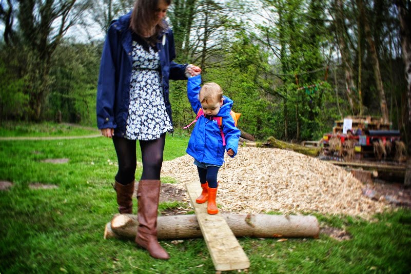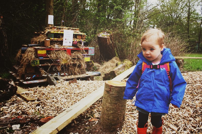 I was sort of hoping it would chuck it down so that we could get the most out of our new coats, while laughing at Laurie getting soaked in his sponge-like coat, but alas we were not in luck. We did, however, stumble across an amazing play area. One of the reasons I go to Etherow Park so much is that they don’t have a playground, so there’s no risk of Ebony sobbing the whole way through the ‘adventure’ because I dragged her away from the slide (anyone who was in the vicinity of Romiley Park on Thursday lunch will attest to the fact that she does not like to leave the slide). It was the end of Easter break, and I think they must have been holding holiday activities at the park, because there was an amazing set up in the education area.