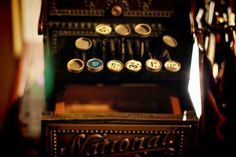 1. Ebony playing with the toys at the museum. 2. Relaxing at the museum. 3. A beautiful old till at the museum. 4. Laurie picking out songs on the museum's jukebox.