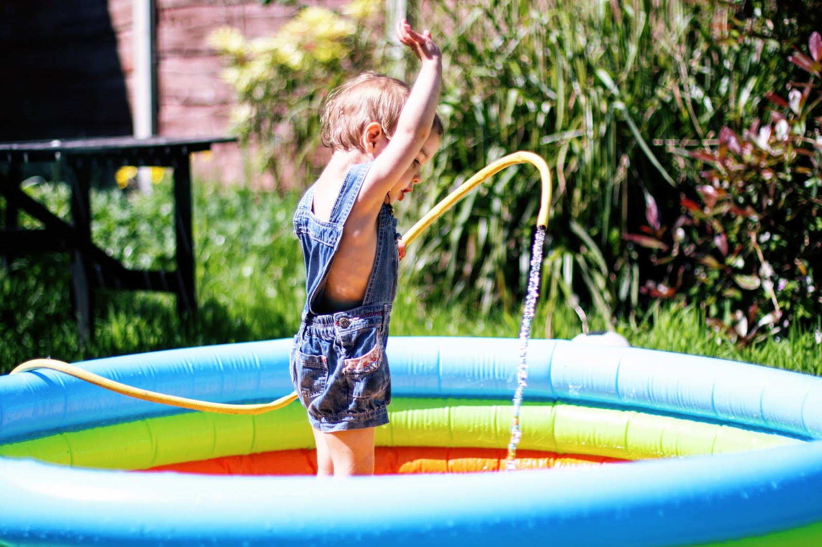 I'm behind. I'm always behind. The top photograph was taken during our last week at our old house. The weather was beautiful, so we set up the paddling pool in the garden and Ebony spent a couple of days splashing around in it. Getting prepared for the house move was pretty stressful, so it was nice to take a few days to just enjoy the weather and have fun.