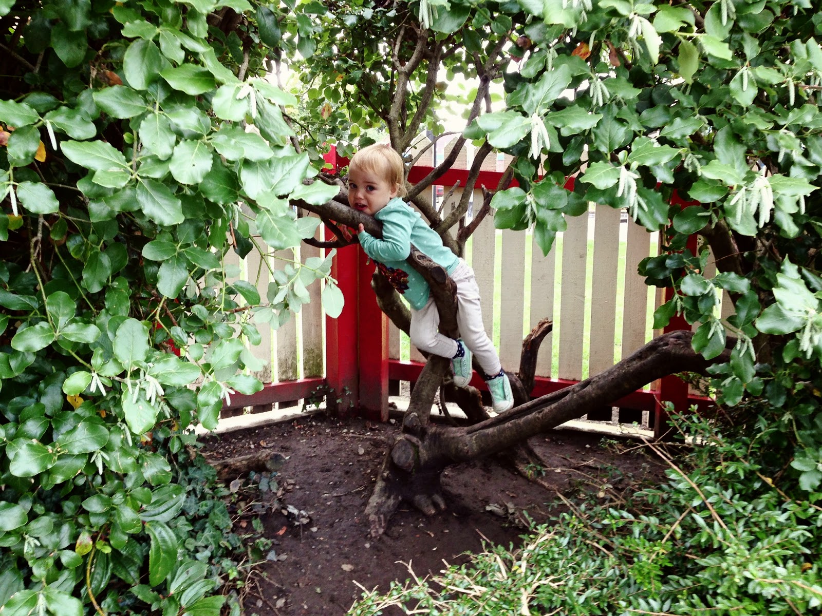 This photo was taken on a trip to the park. There's a small clearing in the bushes at the side of the play area, and all the toddlers seem to spend most of their time hanging out there. Ebony had disappeared from view, but I spotted her shoes hanging from the branch so walked over to see if she needed help getting down. She didn't, of course, so I left her to it. I think she spent most of the trip attached to this branch, arguing with any children who asked her to move.