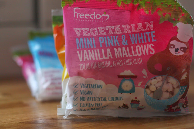 The company has rebranded, bidding a kind farewell to the cute bunny packaging of days gone by. Now, a lovable sloth, affectionately known to all his friends as Cedric, takes centre stage, and the once-pastel colours have been replaced with bright packaging more in keeping with other marshmallow packaging. The new packaging is great, a definite improvement, and yet hasn’t lost any of the important information detailing who can (pretty much everyone) eat the goodies inside. Freedom Mallows have also added miniature mallows to their product range, these are perfect for baking with. They melt faster, and are perfect atop a steaming mug of hot chocolate.