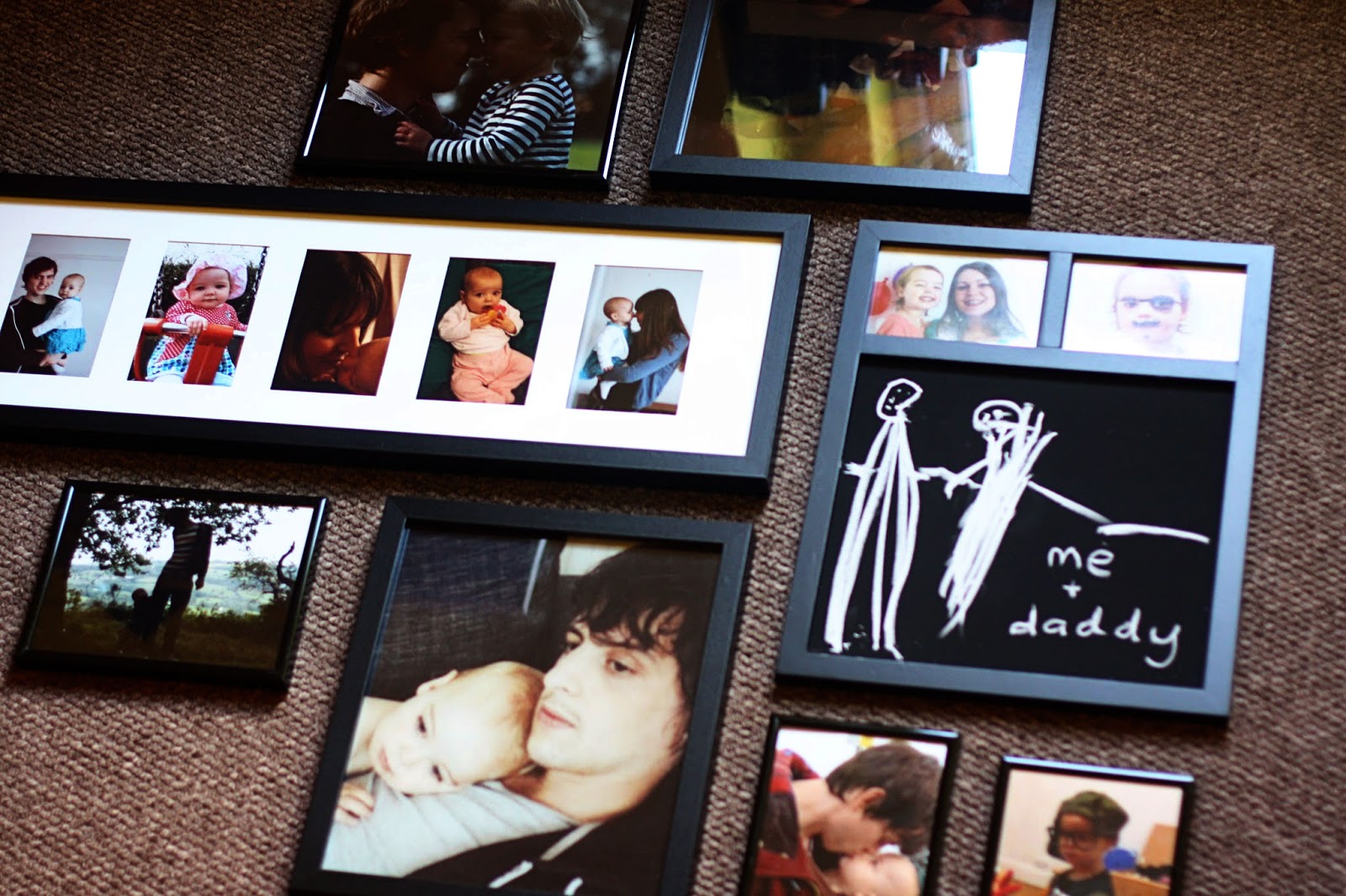 Once I’d chosen the frames I wanted to feature on the wall, it was time to choose which photos would go up. I wanted to choose some of Laurie’s favourites, as well as sticking up a few of my own. I also wanted to make sure that the photos reflected the whole of Ebony’s life, rather than just all being from a particular moment in time. I also wanted to put a feature up that wasn’t just a print. I was hoping to find a ‘L’ that could go on the wall, but in the end settled for a blackboard. I got Ebony to draw a picture on the blackboard so I’m sure Laurie will love it.