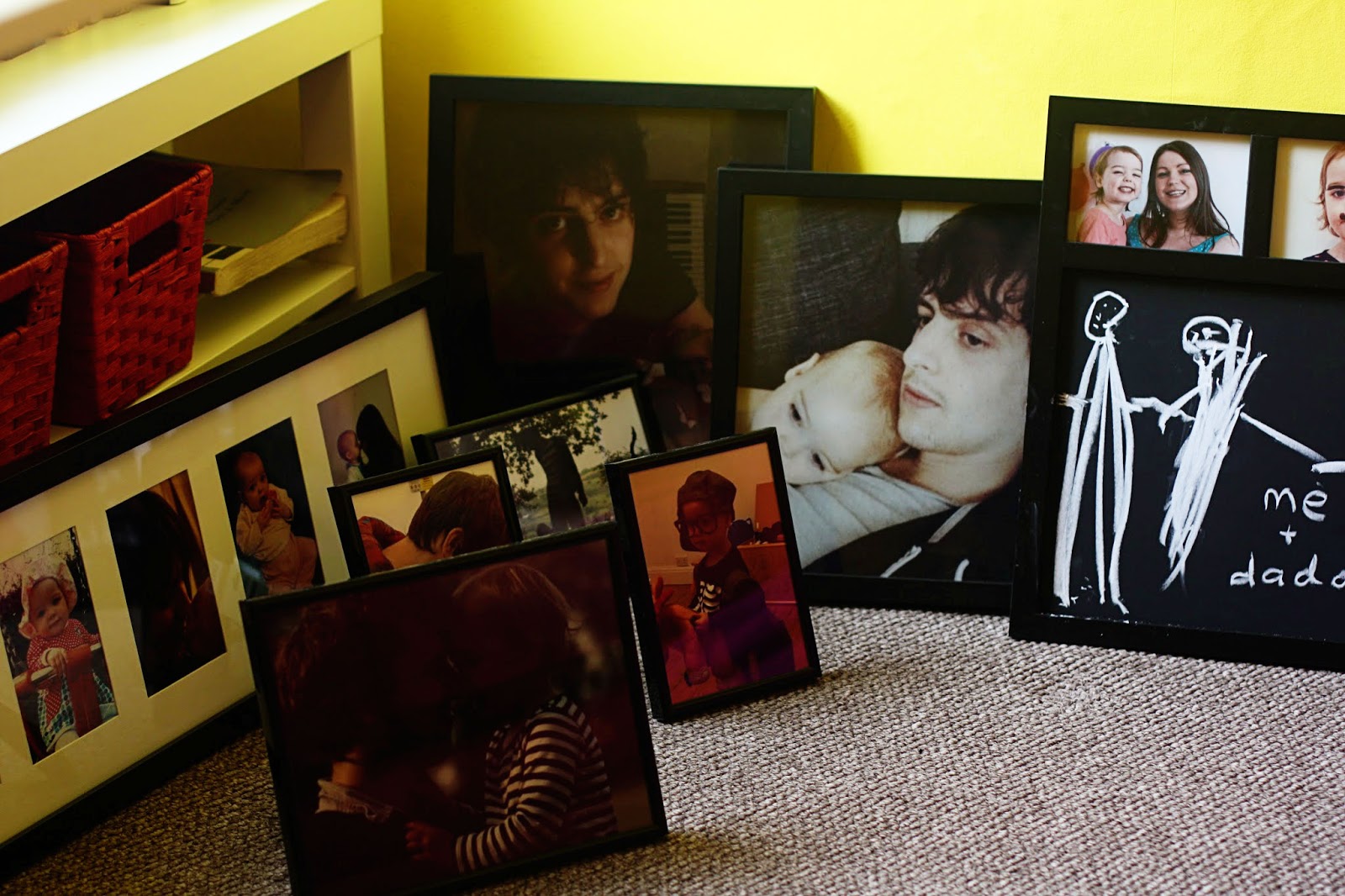 The room was in need of a few extra finishing touches to try and tone down the walls a little, and I still haven’t got round to sorting out a lot of these. So, for Father’s Day, I thought we might try to make the little more homely for him. The great thing about being Laurie is that he has a very lovely wife who takes hundreds and hundreds of photos of him and his daughter (interestingly, there are about eight photos of me and Ebony, and I took them myself with a tripod). I decided to get a few of these photographs printed off to create a gallery wall in Laurie’s office.