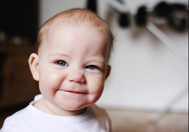 She doesn't feel like a baby anymore. She's not a toddler, because she isn't toddling just yet but she's well on her way. We call her The Brute and it suits her perfectly (though may lead to identity problems in the future). She is strong and sturdy and never gives up. She's on the move, if I look away momentarily she is climbing into the fireplace or standing by the television. I can't leave her alone for fear of the chaos she will cause while my back is turned. She loves her food, she sucks chews and occasionally swallows pretty much anything I put in front of her. By the end of the meal, she is covered from head to toe in a rainbow of food. She has to be bathed in the sink, hummus dripping from her chin and peanut butter in her ears, so I can get her clean.