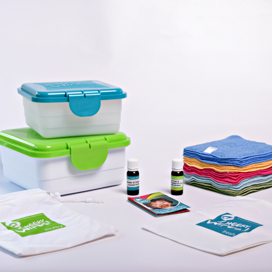 The Cheeky Wipes All-In-One Kit comes with bags to make transporting your wipes even easier. There's a little bag for clean wipes and one for dirties that you can just chuck in the wash when you get home. There's no need to use disposable wipes just because you're out of the house, Cheeky Wipes are easy to use at home and on the move.